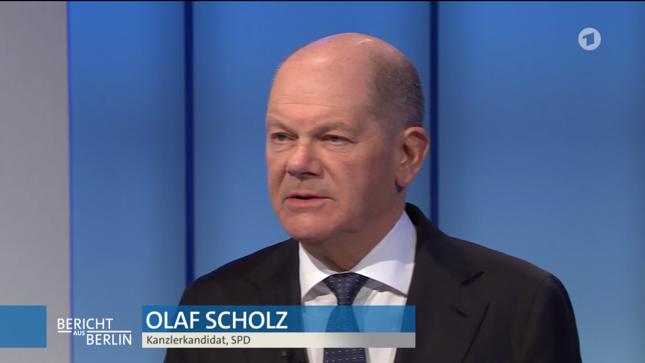 Ruth wird von der ARD für ein Interview mit Olaf Scholz im Wahlkampf befragt.